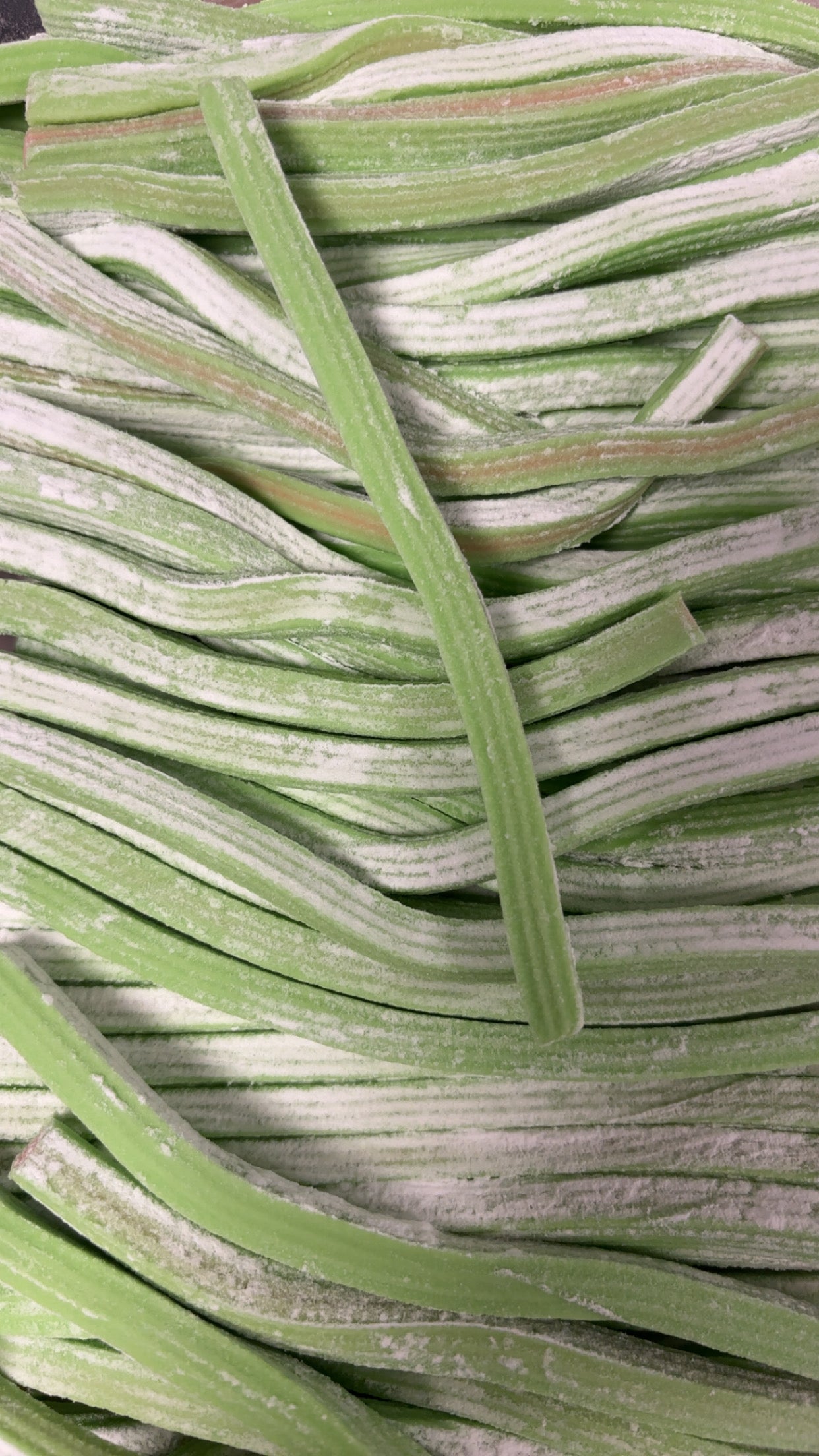 Sucre, sirop de glucose et de fructose, gélatine, graisse végétale (palme), humectant (E422), acidifiants (E296, E270), correcteur d'acidité (E325), amidon, arômes, colorants : E100, E129, E133. Peut avoir des effets indésirables sur l'activité et l'attention des enfants. Peut contenir des traces de gluten.