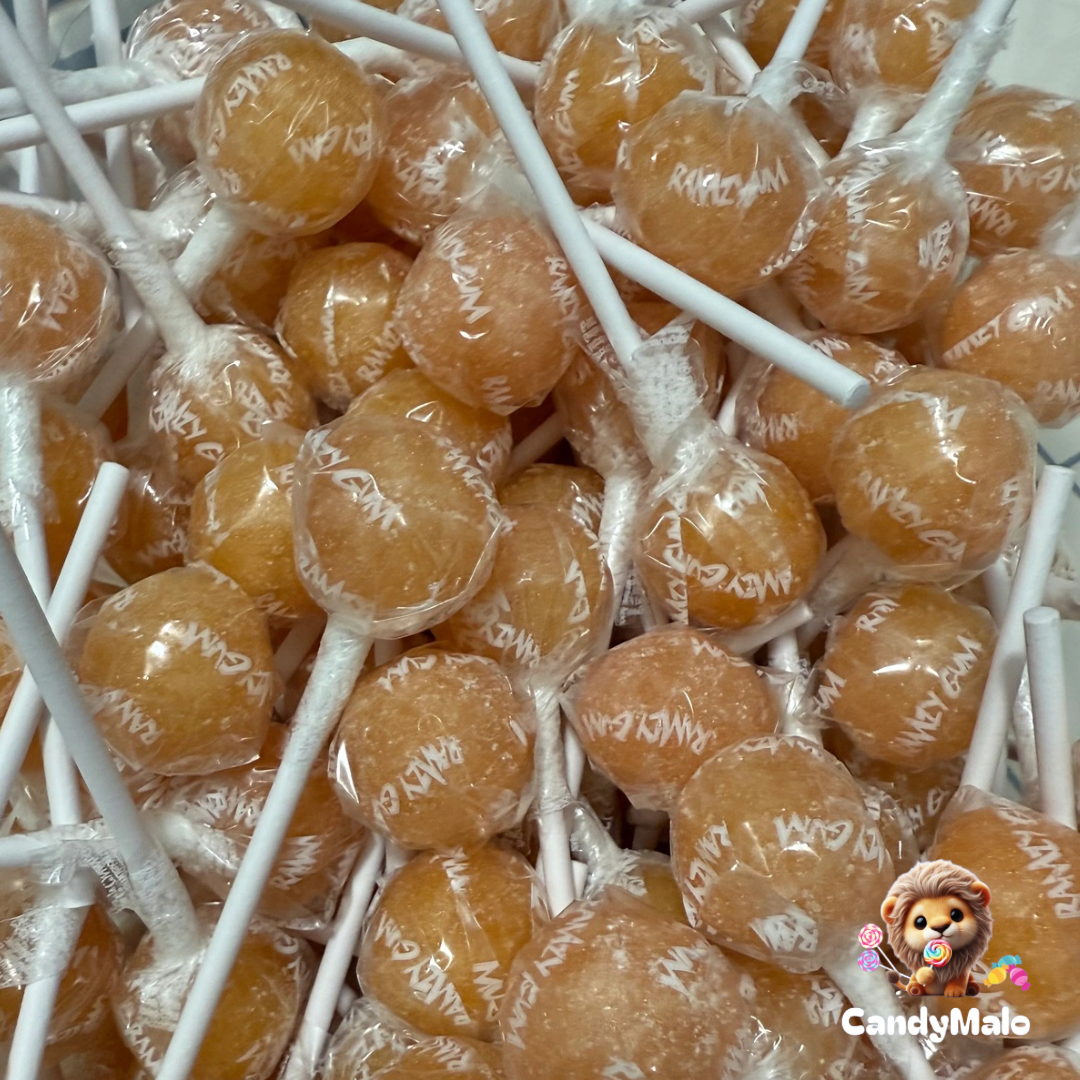 Laissez-vous surprendre par l'explosion de saveurs en bouche avec la sucette Ramzy Fizzy Gum à la pêche et son chewing-gum... 🍑